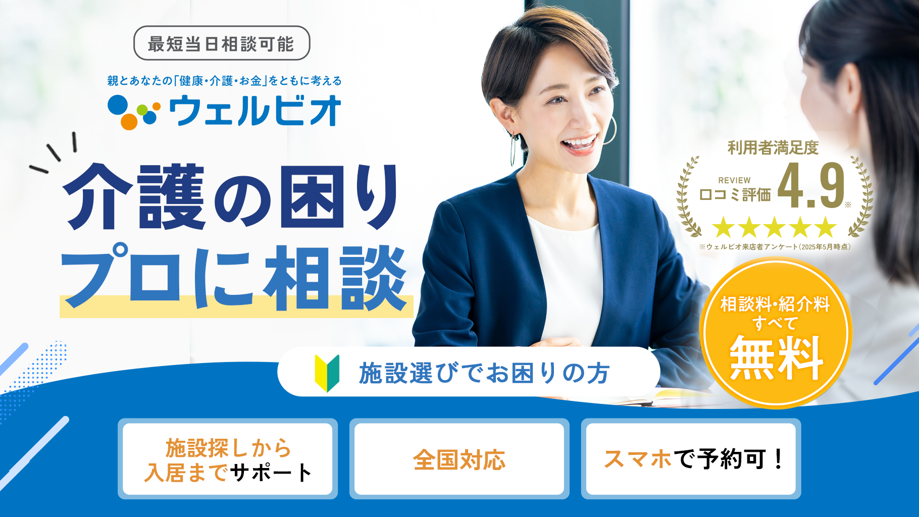 ウェルビオは「これから」の不安や迷いに介護のプロが一緒に向き合う無料相談窓口です。