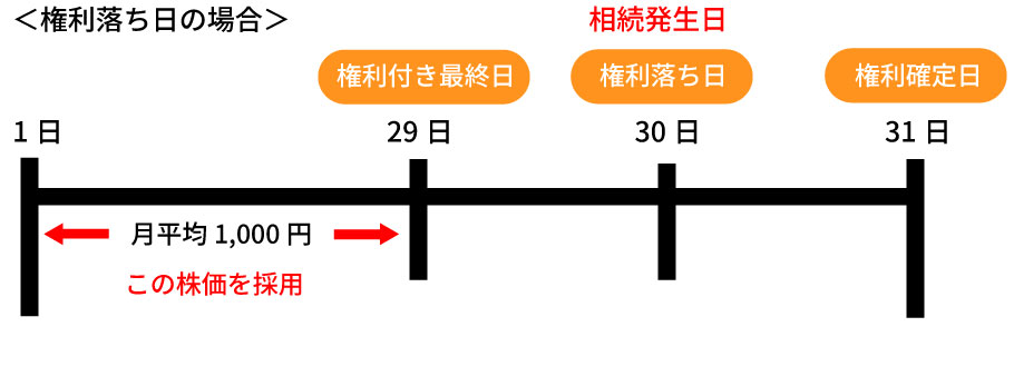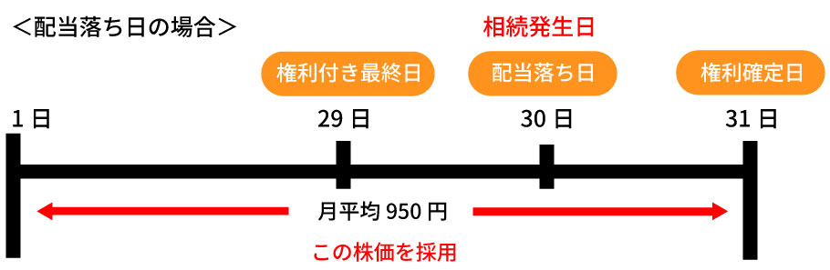 相続発生日が、権利落ち日ではなく配当落ち日の場合は、権利確定日を含めた月平均額で算出します。