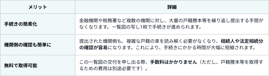 法定相続情報一覧図を作成・活用することで、相続人や金融機関、行政機関にとって、以下のような大きなメリットがあります。