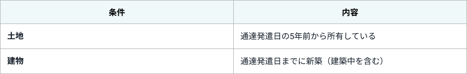 - 一般の貸付用不動産と異なり、「5年以内」という取得時期の基準がありません