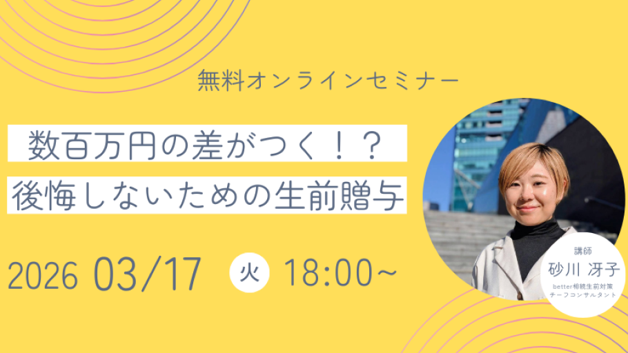 【無料セミナー】数百万円の差がつく⁉後悔しないための生前贈与【better相続】