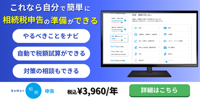 また、将来の相続に向けて今からどのくらい相続税がかかるのかを計算したい、相続税を抑えてより多く家族に財産を遺すための対策をしたいと考えている方は、【better相続申告 生前準備プラン】のご利用をおすすめします。