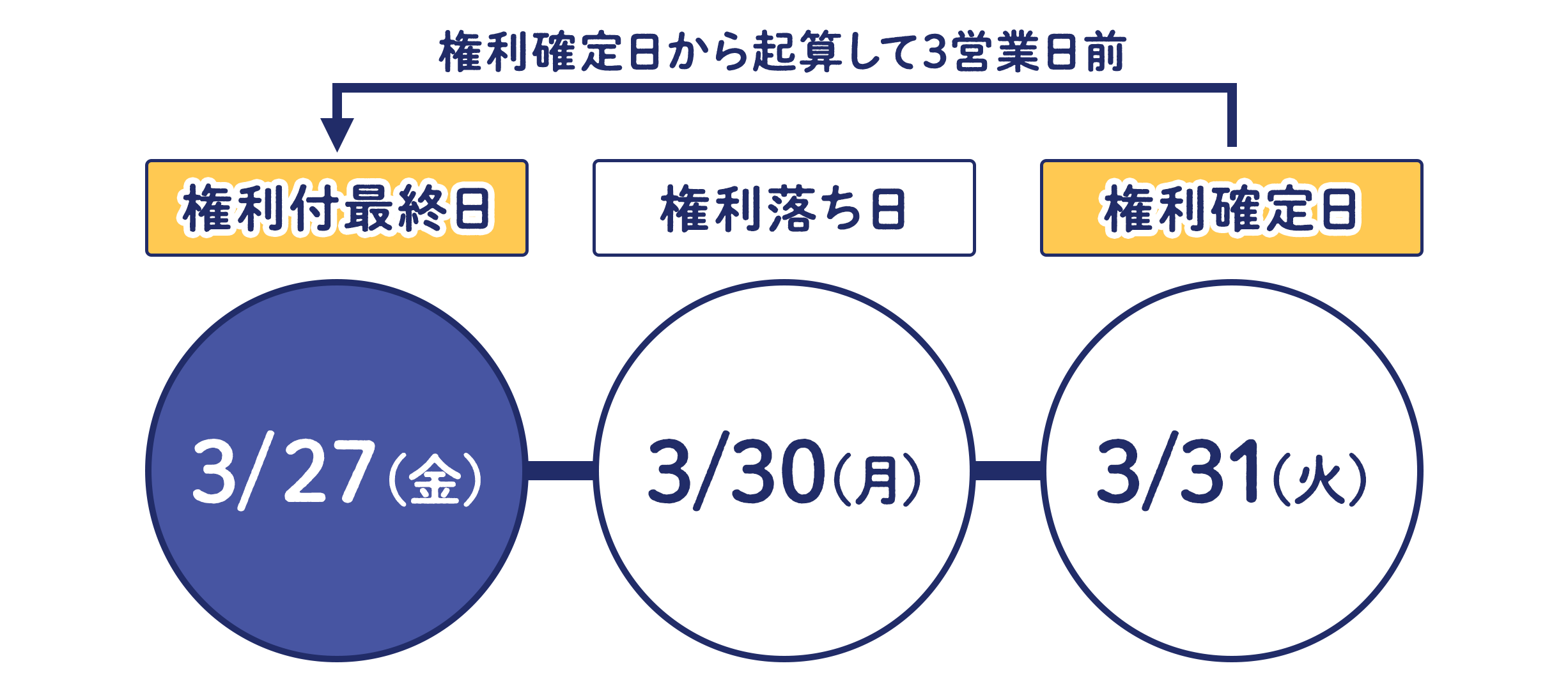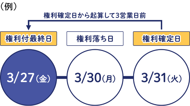 配当金を受け取るには、権利付最終日(権利確定日から起算して3営業日前)の大引け時点で