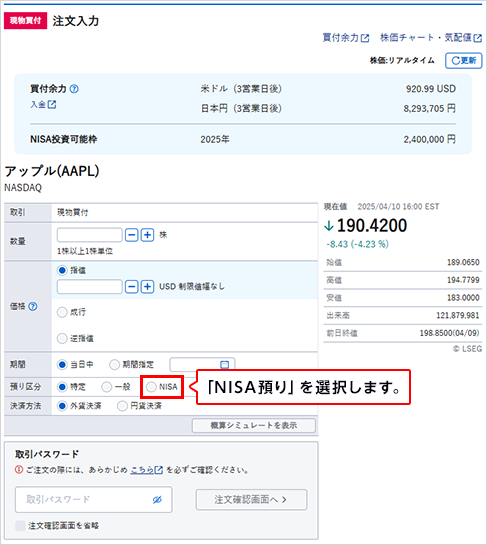 国内株式・米国株式のNISA口座でのご注文方法の詳細はこちら