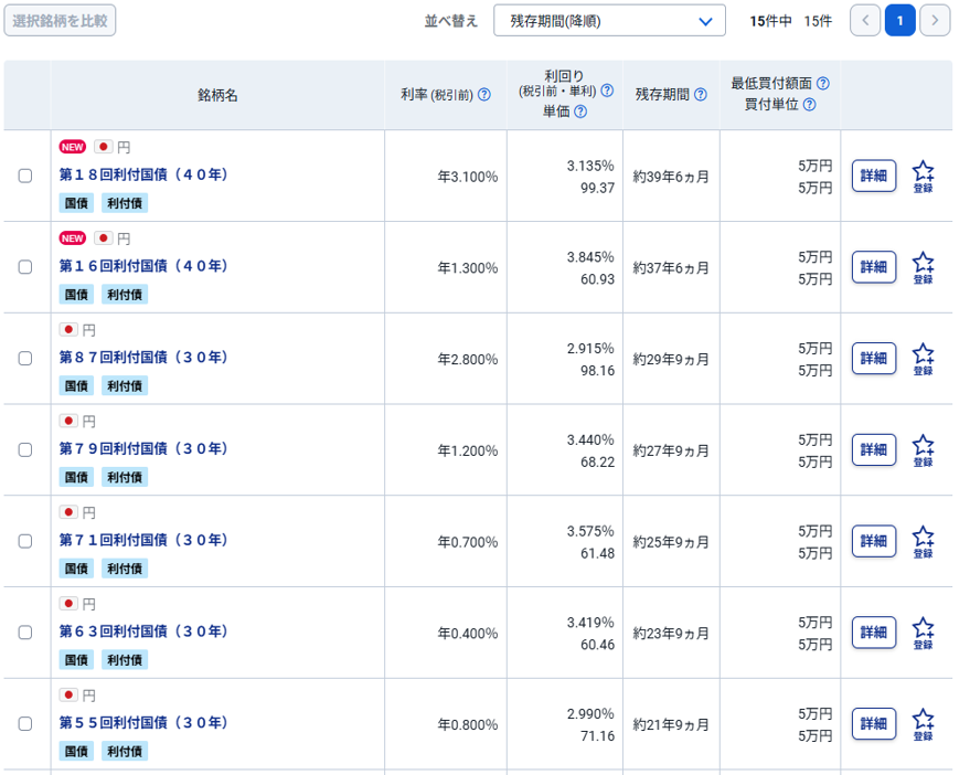 SBI証券で日本の超長期国債を買いたいと思ったら、まずは銘柄を探すところから始めましょう。