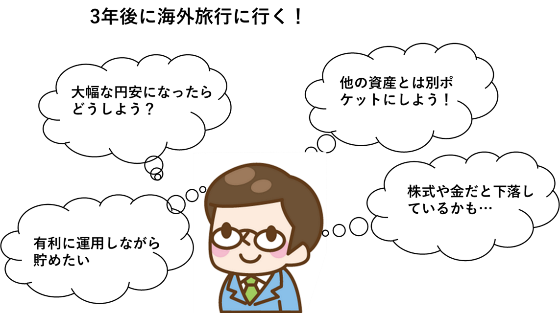 「でもやっぱり海外旅行に行きたい。3年かけて資産運用で増やすぞ!」