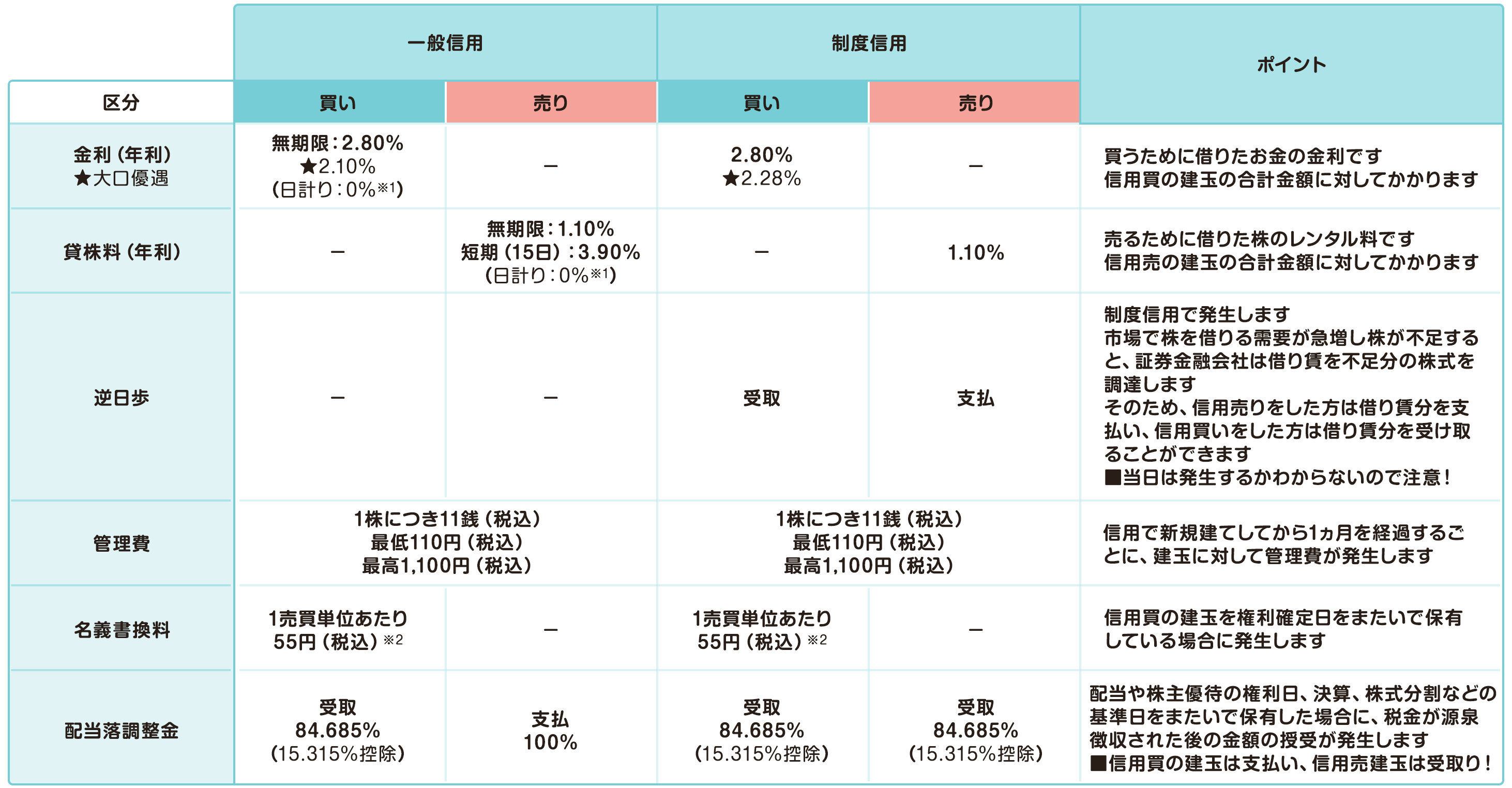 ※信用取引において必要となるその他諸費用の詳細は信用取引のサービス概要をご確認ください。