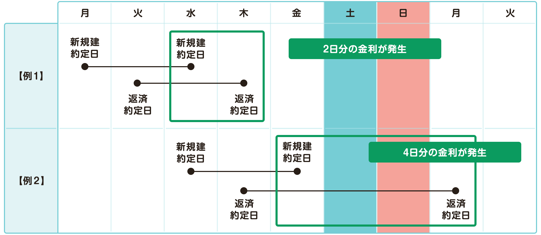 これは、借りた日と返した日、両方の日数を含める数え方です。