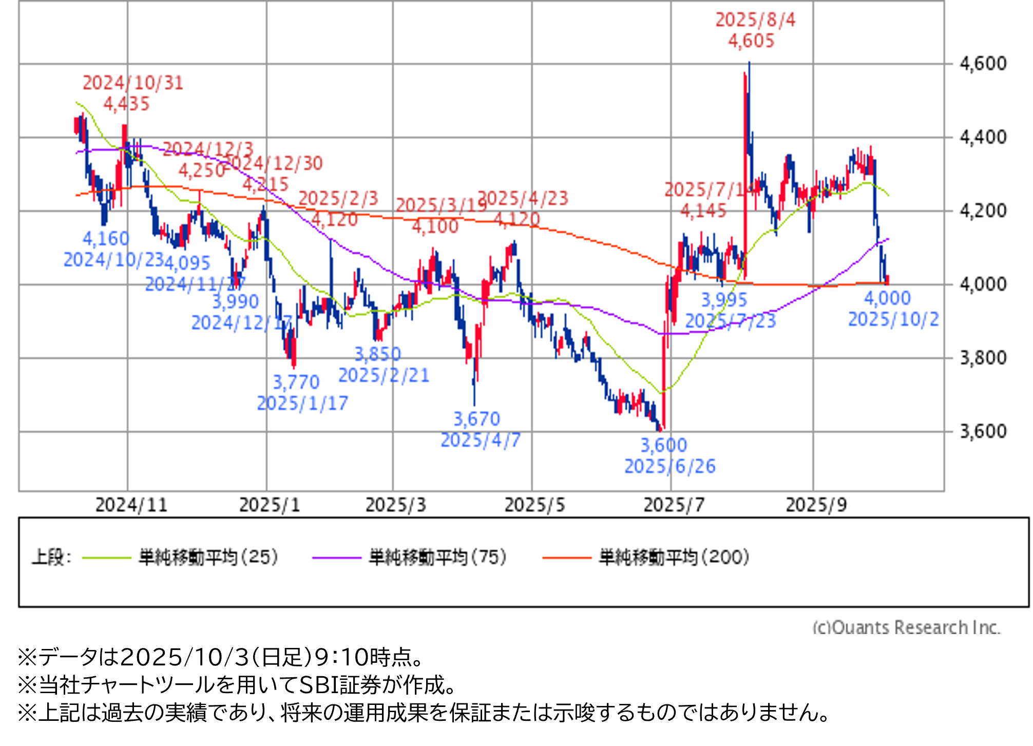 大手証券の一角では、2Q(25.7-9月期)から増益に転じると予想し、目標株価の引き上げを行っています。今秋に発表が予定される2Q決算発表で、実際に増益をキープできれば、現在の保ち合い相場から上放れることも可能になりそうです。