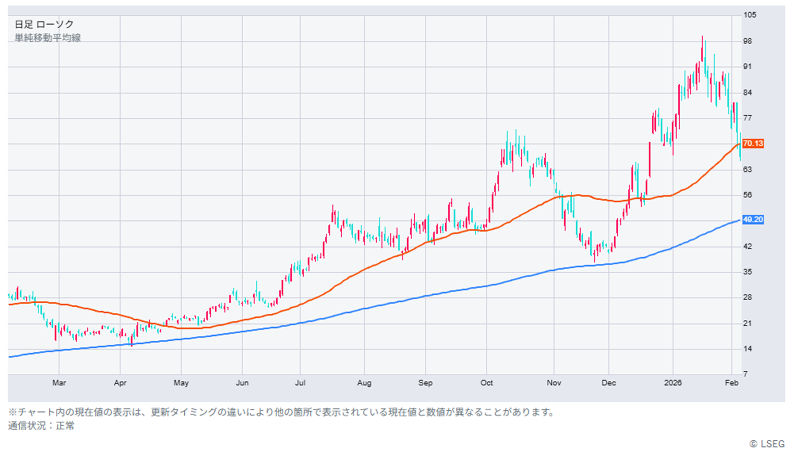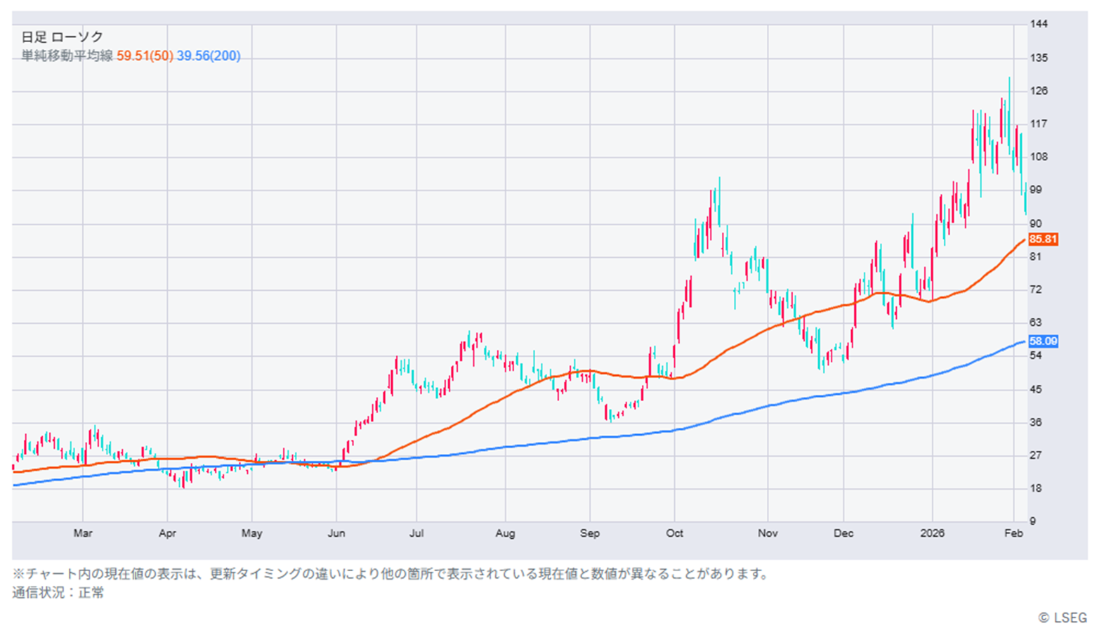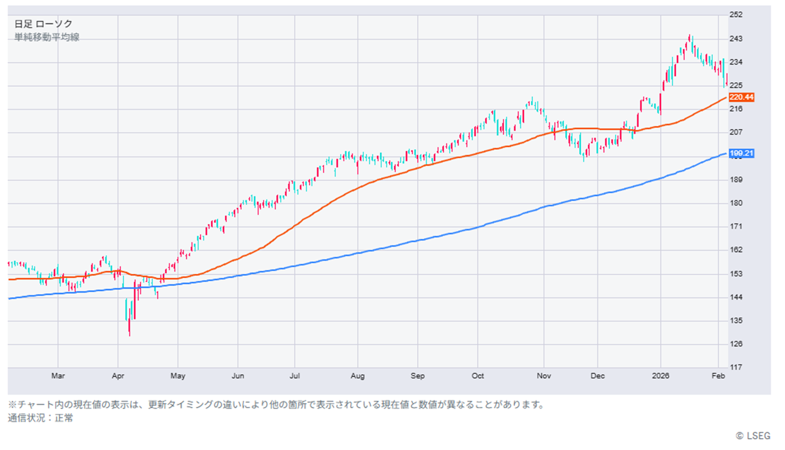 エヌビディア(NVDA)の25年11月-26年1月期決算はAI需要を背景に市場予想で前年比67%増収、同71%増益が見込まれています。一方、競合するアドバンスト マイクロ デバイシズ(AMD)は1-3月期売上高見通しが一部の高い市場予想を下回ったことを背景に、決算発表翌営業日に約17%急落したため。エヌビディアも市場予想を大きく上回る売上高見通しが必要になりそうです。それが確認されるまではAI半導体関連株は神経質な展開も想定されます。