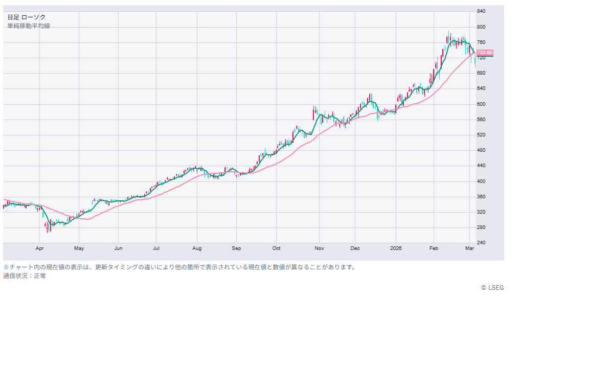 ハンドバッグのコーチやケイト・スペードなど手の届く高級品で有名な米国を代表するブランド企業です。既存顧客の需要が拡大する中、25年10-12月期の新規顧客数(370万人超)のおよそ1/3がZ世代で、Z世代の顧客獲得に成功しています。25年6月期の北米売上高比率は約64%と北米メインです。米国実質GDPは個人消費をけん引役として成長しており、恩恵を受けやすい代表銘柄として注目されそうです。なお、会社側は2月に26年6月期の業績見通しを上方修正しています 。