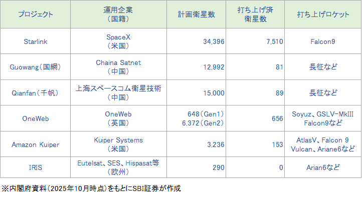 図表3 「衛星コンステレーション」の主なプロジェクト