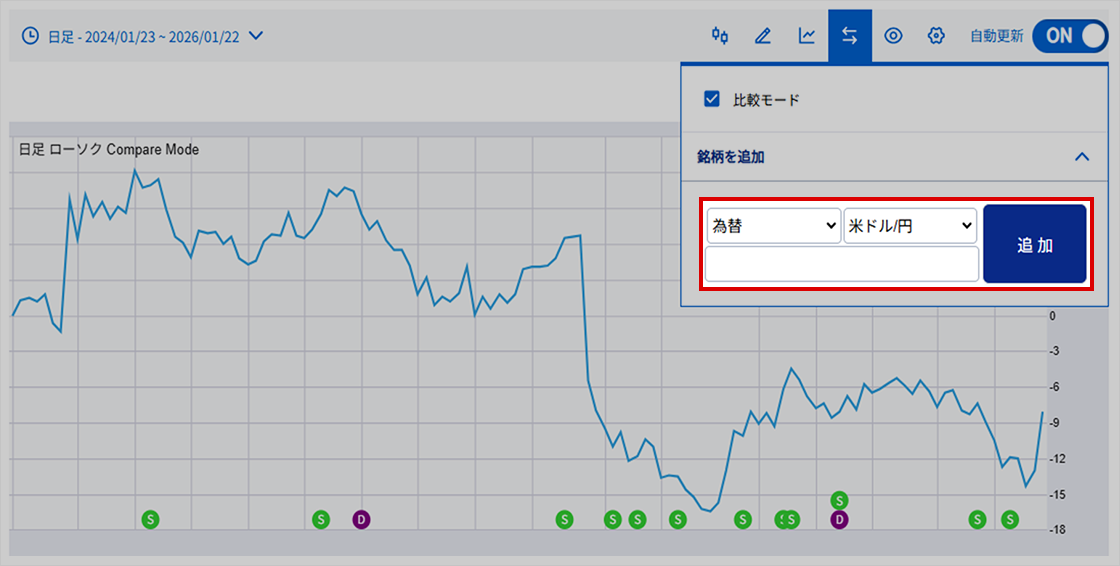 ステップ3:比較したい銘柄を追加し、「追加」を選択