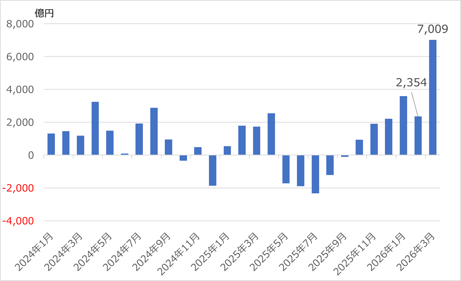 図表1 投資信託(ETFを除く国内公募追加型株式投資信託)・国内株式カテゴリーの資金流入動向 (2024年1月~2026年3月)