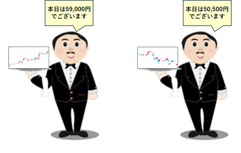 私たちは、その価格で買うことも買わないこともできるので、「今は要らない」と言えば、ミスター・マーケットは「かしこまりました」と何事もなかったかのように帰っていきます。そして、その次の日も現れて「△△株は、今日は□□円でございます」と提示してきます。