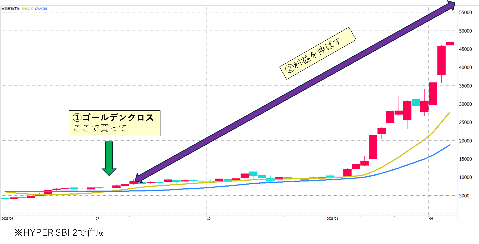利益を伸ばす手法例1:ゴールデンクロスとデッドクロス