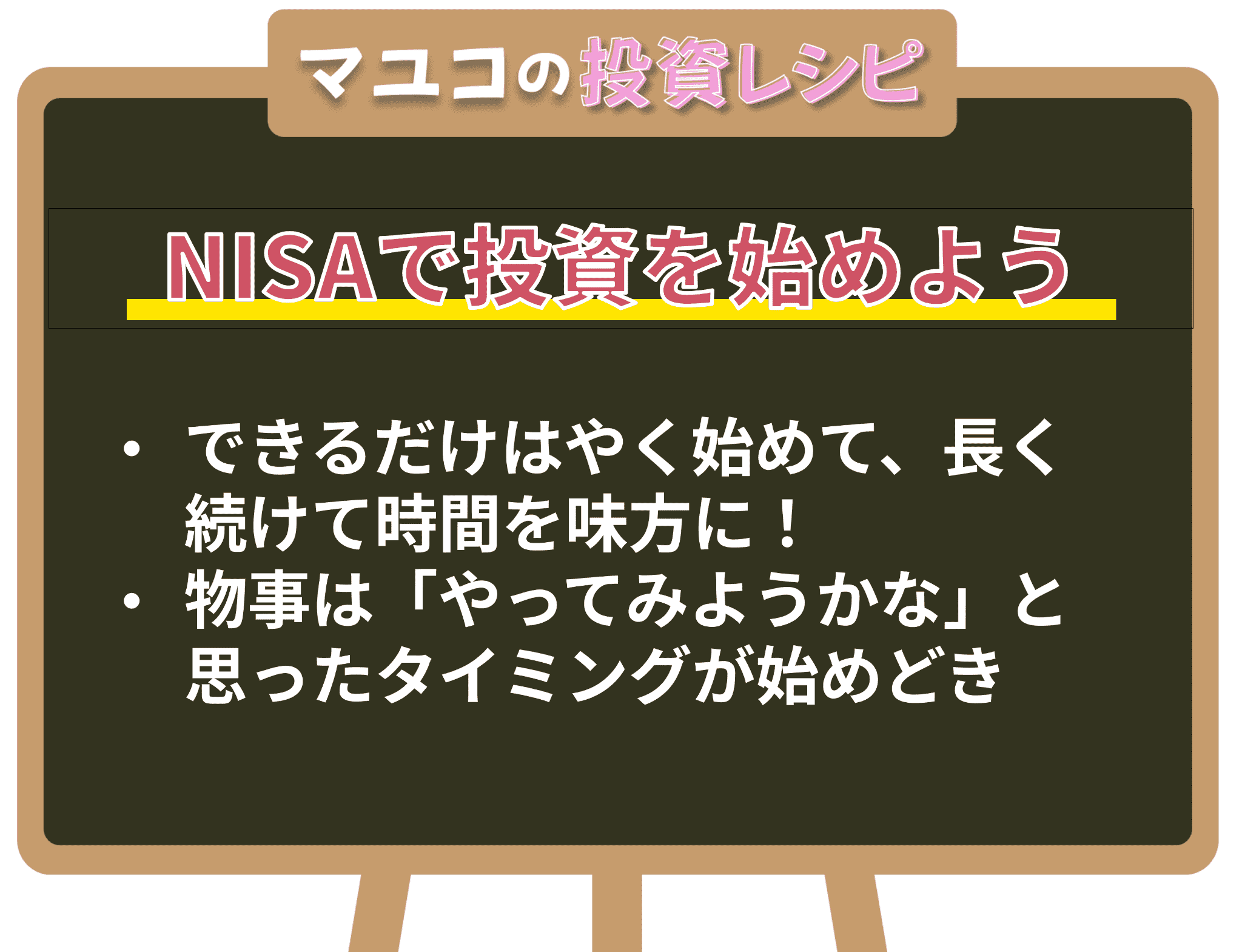NISAは、できるだけはやく始めて、長く続けることがポイントです。