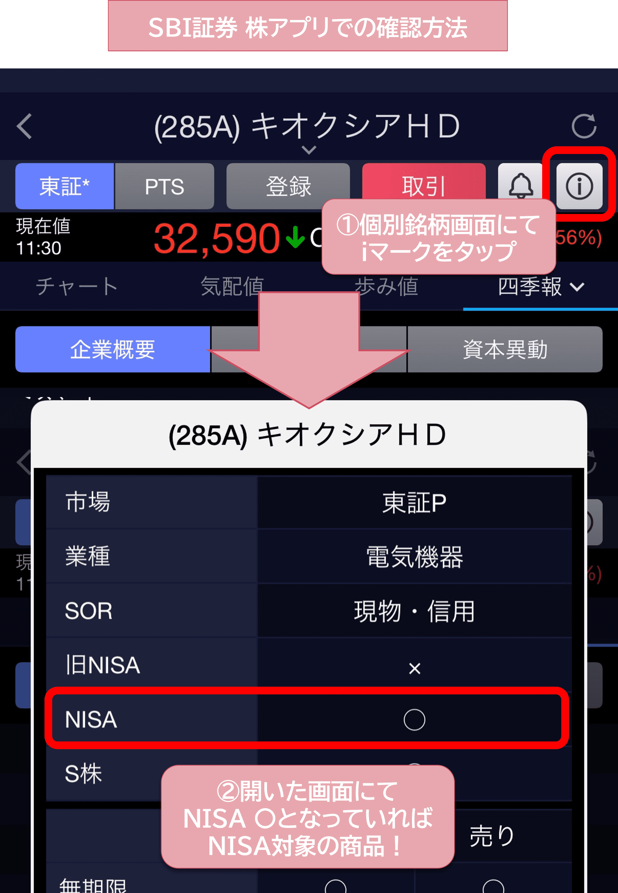 図表4 NISAで買えるかどうかの確認方法 (国内株・株アプリ)