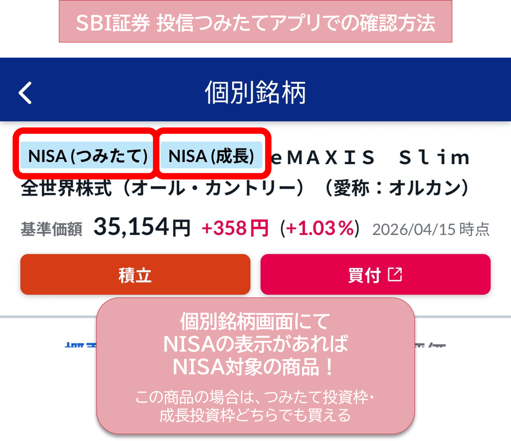 NISA対象の商品かどうかは個別の商品ページにてご確認いただけます。