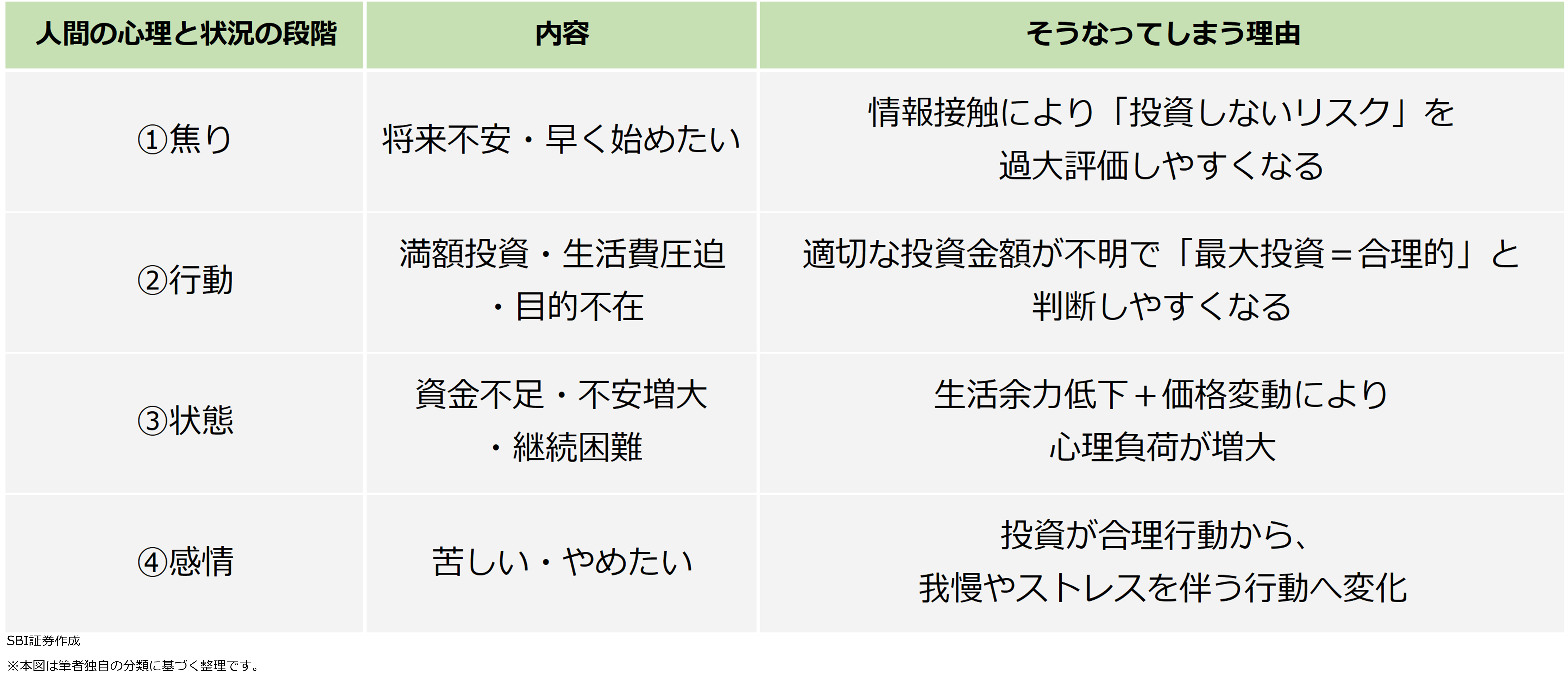 ・相場下落で不安になり、積立停止や売却を行う