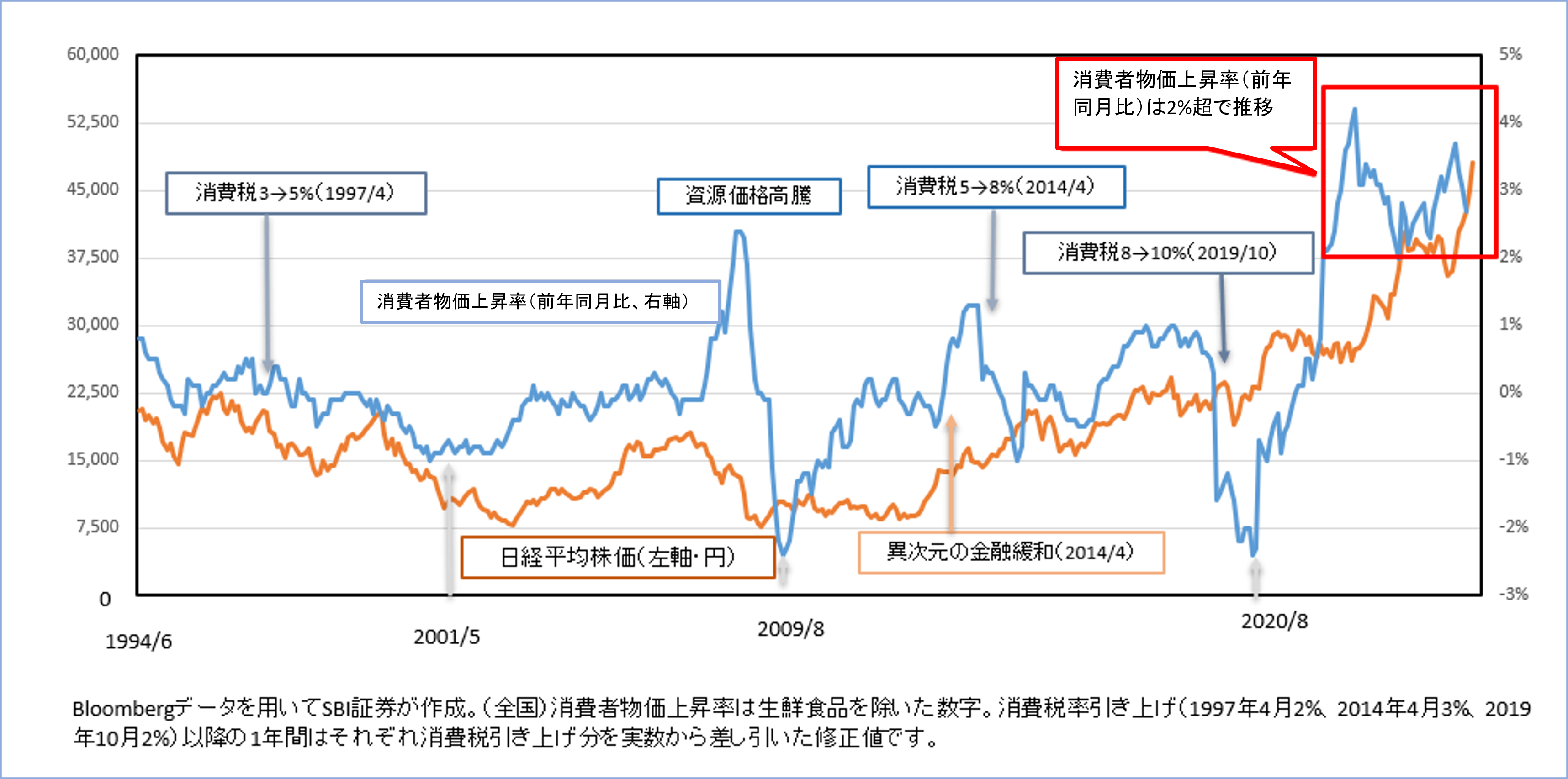 図表1 日経平均株価およびNYダウの値動きとその背景