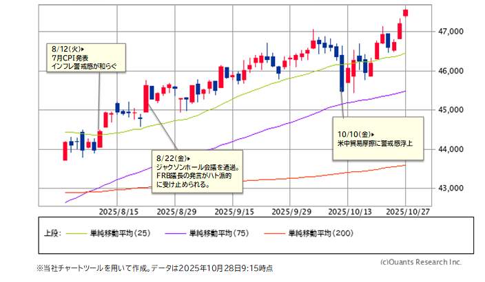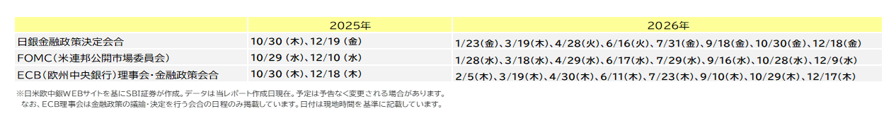 ・米中首脳会談30日(木):対中国100%関税の発動見送りや、中国によるレアアース規制の延期など、貿易摩擦の緩和に向けた合意形成が期待されており、株式市場にはポジティブな材料となる可能性があります。