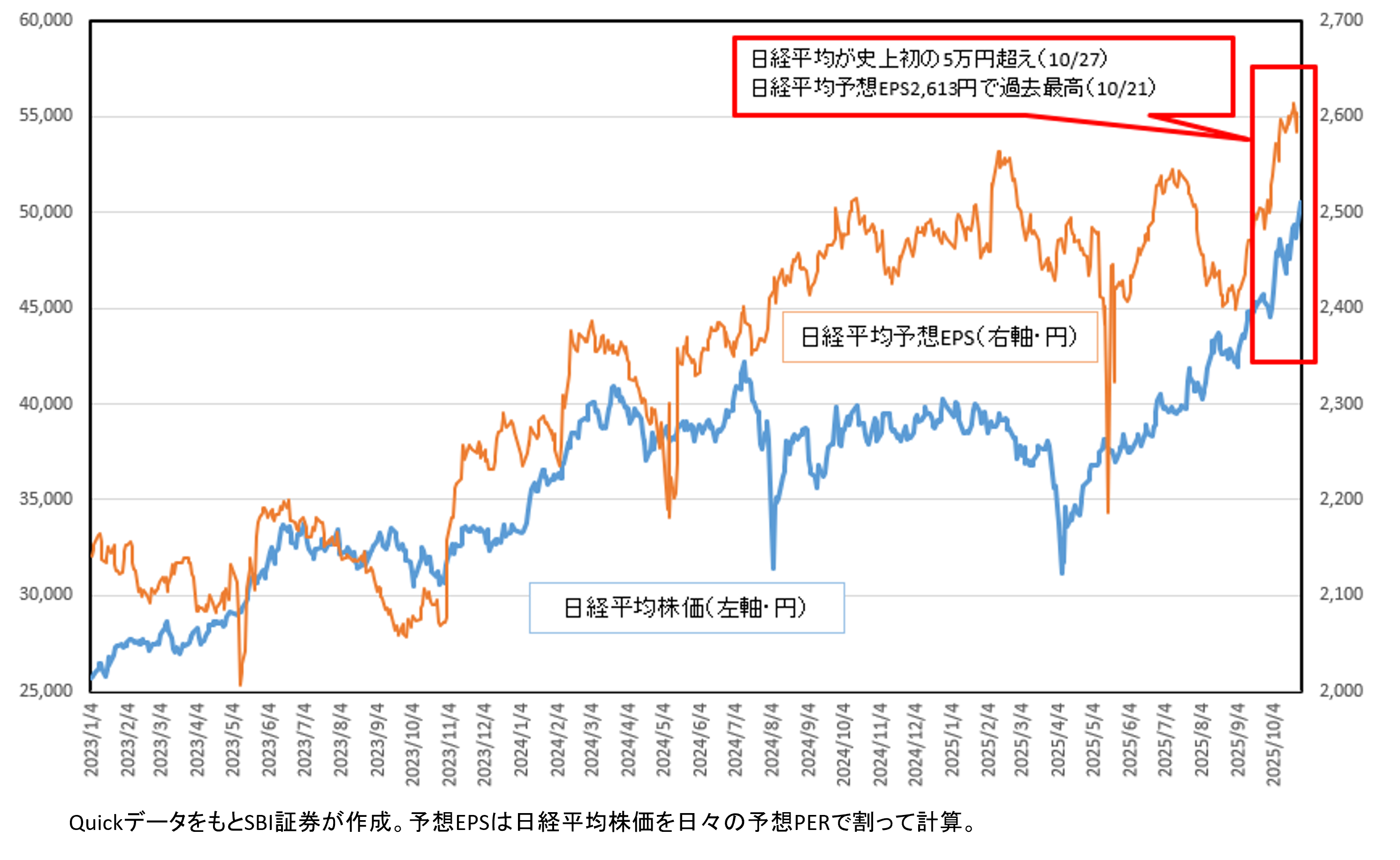 図表9 日経平均株価が5万円超え~予想EPSも過去最高の2,600円超え