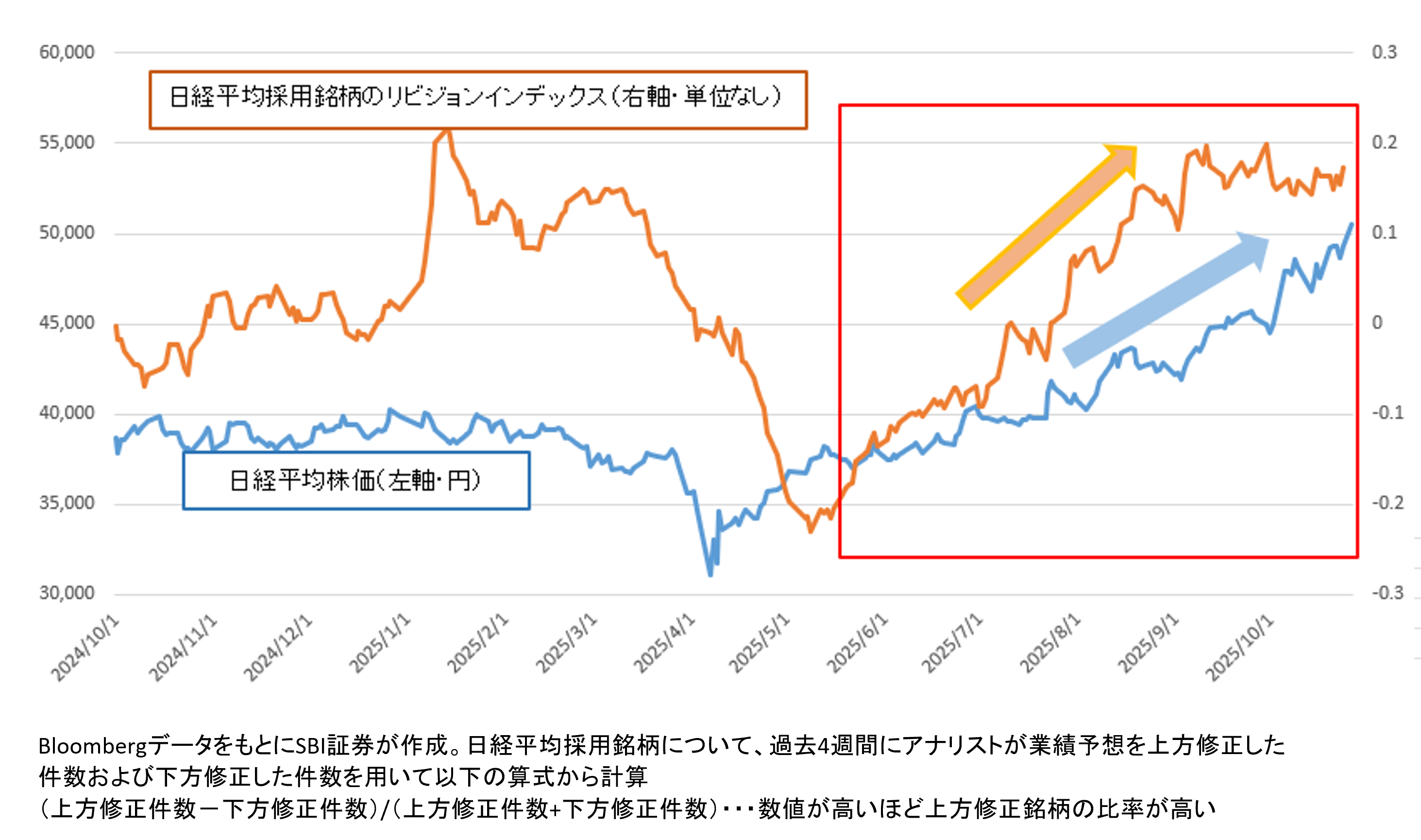 図表10 リビジョンインデックスの上昇が示唆する?日経平均株価の先高
