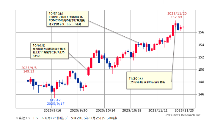 FRBの12月追加利下げ観測が強まるかどうかが、今後一つポイントになりそうです。