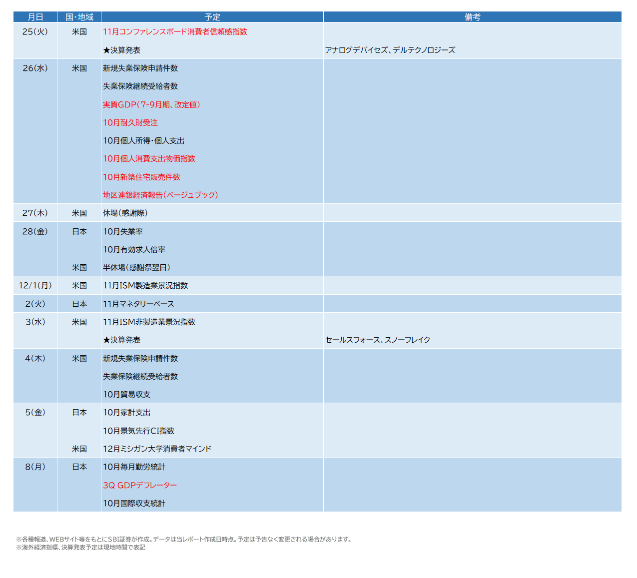 ②週中:米国の金利動向やエヌビディア決算への警戒感が投資家心理を冷やし、ハイテク株中心に調整が進む