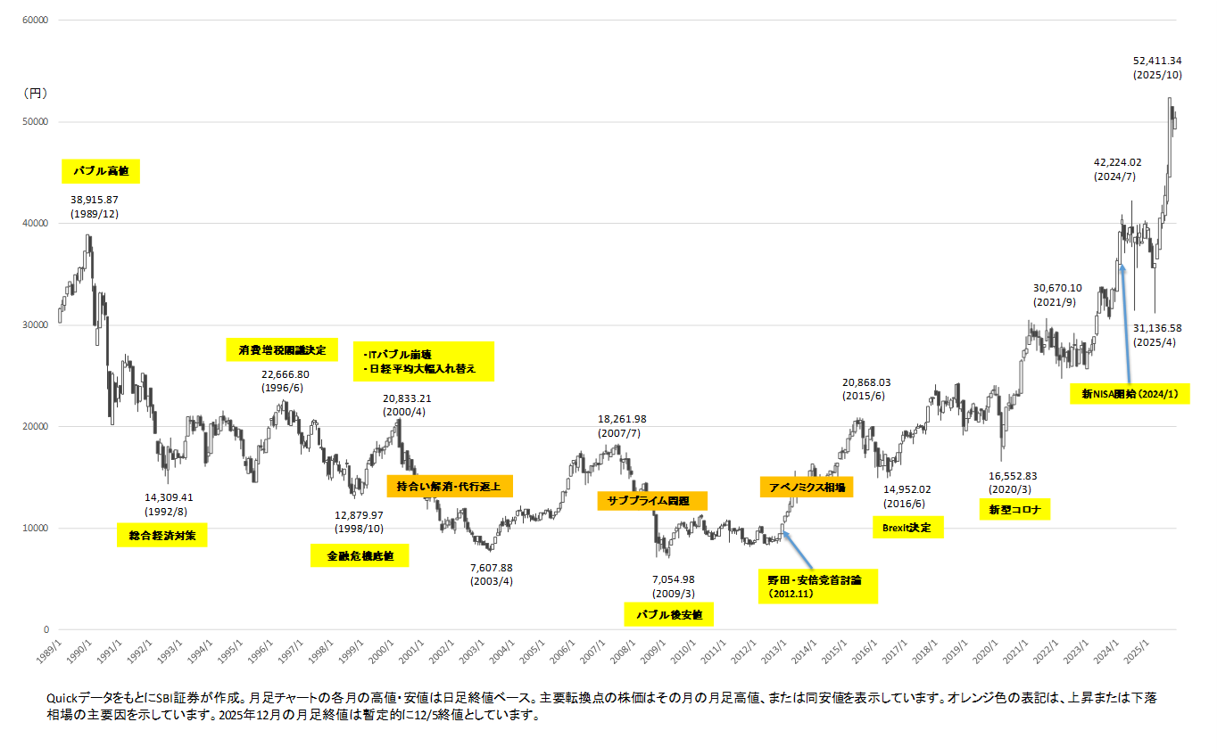 図表9 日経平均株価(月足)の長期推移(1989年1月~2025年12月)