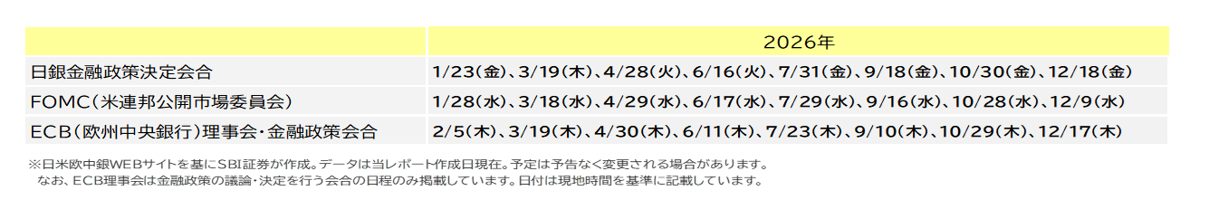 図表2 日米欧中央銀行会議の結果発表予定