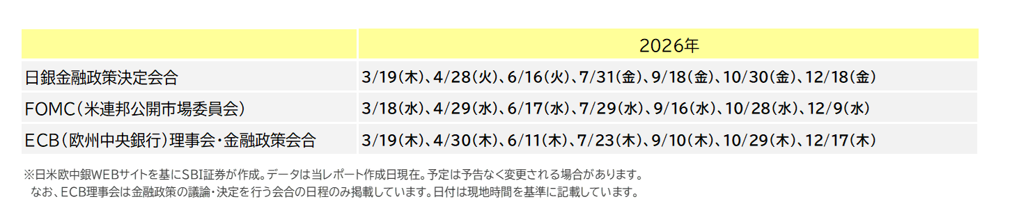 図表3 日米欧中央銀行会議の結果発表予定