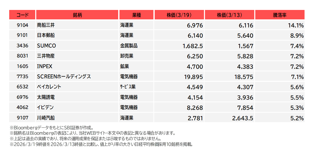 図表4 日経平均株価採用銘柄の騰落率上位(3/13-3/19)