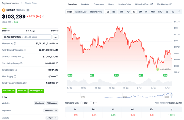 暗号資産市場 週刊レポート(2025年11月6日〜11月12日)