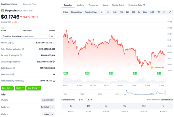 ドージコインは0.17〜0.18ドル台で推移。Elon Musk氏の「It’s time」投稿で思惑が広がる場面はあったものの、持続的な買いにはつながらず、ビットコインや主要アルトの地合い次第という位置づけが続きます。