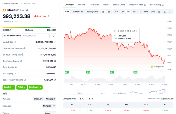 暗号資産市場 週刊レポート(2025年11月13日〜11月19日)