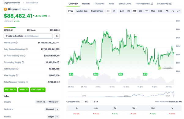 暗号資産市場 週刊レポート(2025年12月18日〜12月23日)