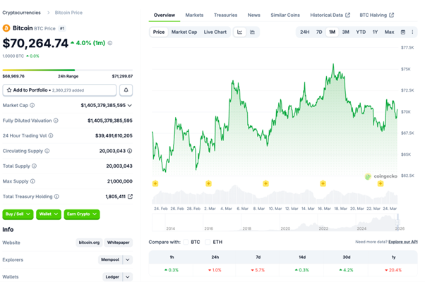 暗号資産市場週刊レポート(2026年3月19日〜3月25日)