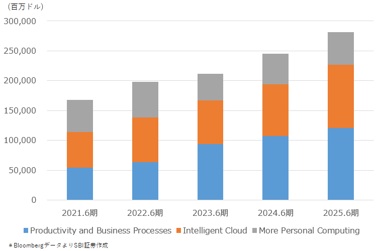 図表3 マイクロソフト直近5年度セグメント別売上高推移