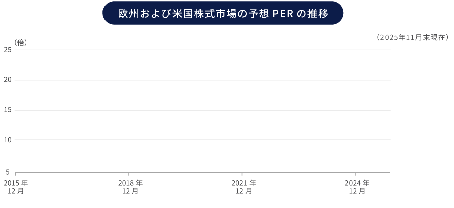 - 欧州株式市場は中長期にわたって、また足元においても、相対的に割安に投資できる水準となっています。