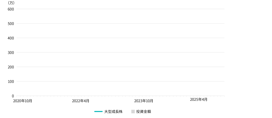 大型成長株はMSCI オール・カントリー・ワールド・インデックス 大型株グロース・インデックス(税引後配当込み、円換算ベース)。米ドルベースの月末より1日前のデータ(トータルリターン)を各月末の三菱UFJ銀行対顧客公示相場レートを用いて円換算。2025年10月末現在の積立投資の評価額は、1万円未満を切り捨てて表示。使用した指数の権利についてはページ末尾をご参照ください。