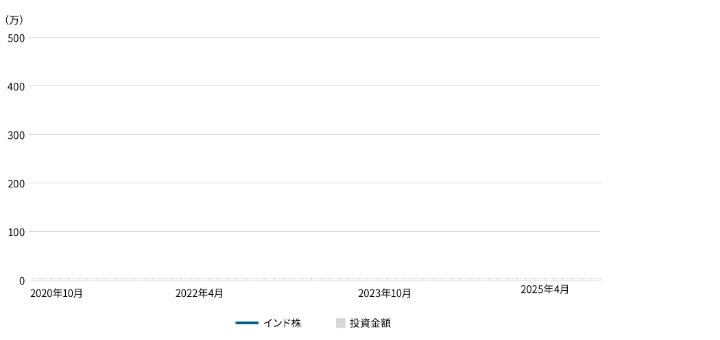 インド株はNifty50指数(配当込み、インドルピーベースの月末より1日前のデータ(トータルリターン)を各月末の三菱UFJ銀行対顧客公示相場レートを用いて円換算)。2025年10月現在の積立投資の評価額は、1万円未満を切り捨てて表示。使用した指数の権利についてはページ末尾をご参照ください。