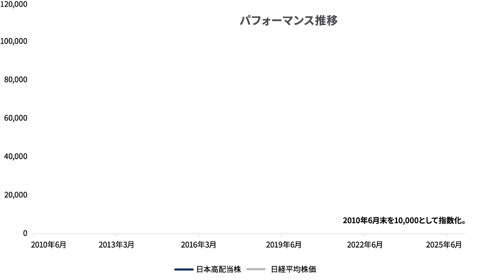 出所:日本経済新聞社等のデータを基に、アムンディ・ジャパン株式会社が作成。日本高配当株は日経累進高配当株指数、いずれもトータルリターン。使用した指数の権利についてはページ末尾をご参照ください。