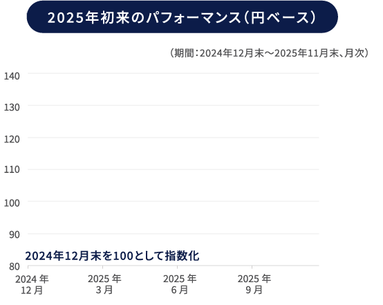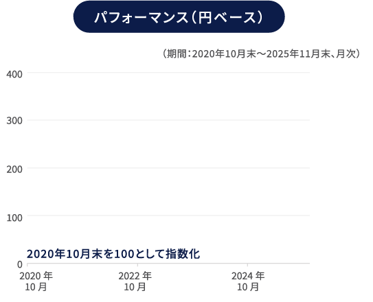 上記はファンドが投資する上場投資信託証券(ETF)が連動する運用成果を目指す「ユーロネクスト欧州戦略的オートノミー指数」の実績であり、当ファンドあるいは主要投資対象ファンドの将来の運用成果等を保証するものではないことに十分ご注意ください。使用した指数の権利はページ末尾をご覧ください。