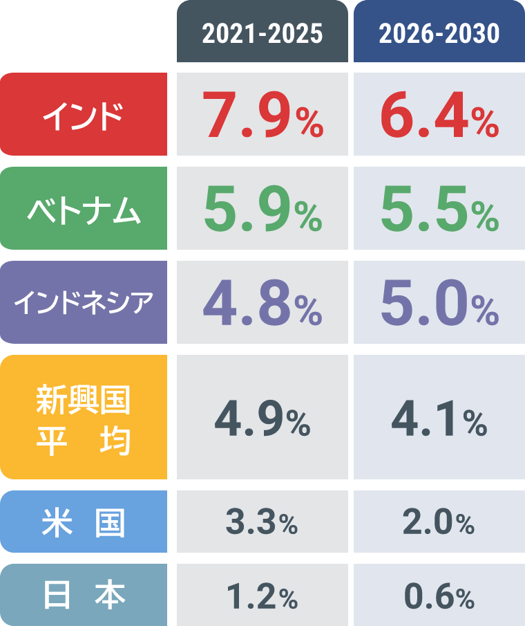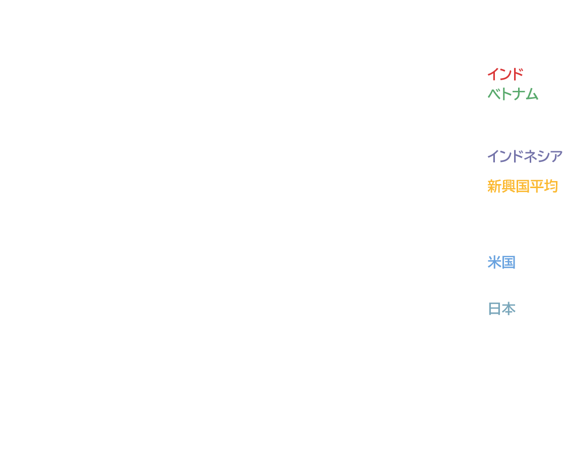 インド、ベトナム、インドネシアは、今後も主要国を大きく上回る