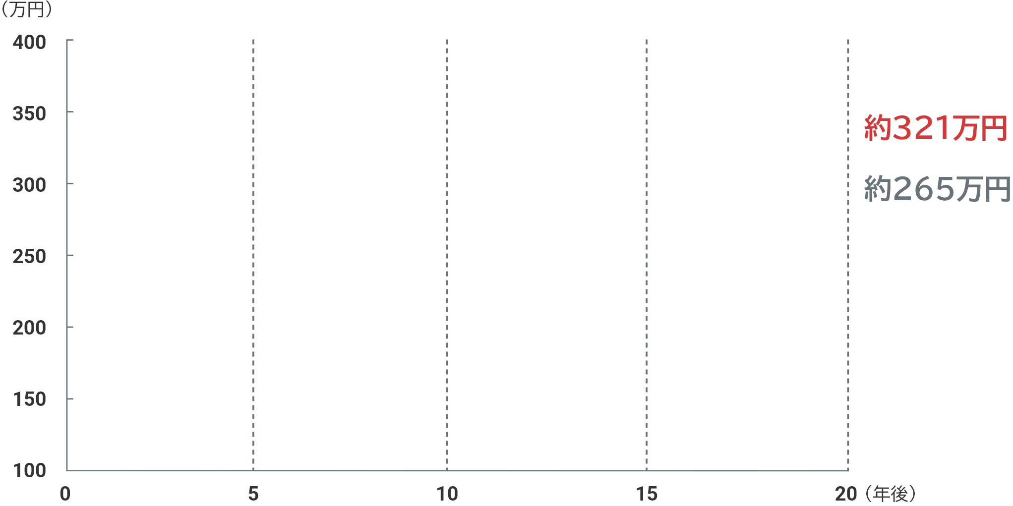 ※上記は、運用コストの差が長期的なパフォーマンスへ与える影響をイメージしていただくための図です。すべてのケースにあてはまるものではなく、また実際の数値に基づくものではありません。将来の運用成果等を示唆・保証するものではありません。