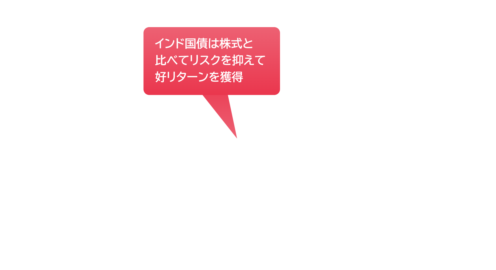 ※+αインド国債(シミュレーション)は、インド10年国債利回り(現地通貨ベース): J.P. Morgan Government Bond Index-Emerging Markets India unhedgedの実績(円換算ベース)から+αインド国債の運用管理費用(信託報酬、年率0.847%)を控除したシミュレーションです。 J.P. Morgan Government Bond Index-Emerging Markets India unhedgedは+αインド国債のベンチマークでも参考指数でもありません。