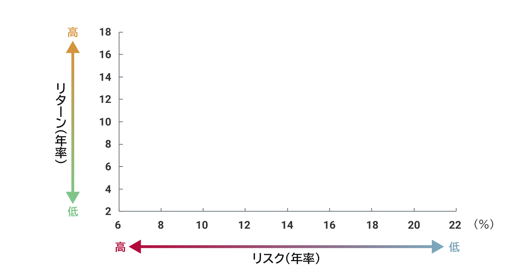 ※当シミュレーションは、シミュレーションに基づく参考表示による情報提供を目的としているものであり、投資勧誘を目的とするものではありません。上記は、一定の前提のもとで計算したシミュレーションであり、実際のパフォーマンスとは異なります。数値は過去の実績及び架空の前提条件をもとに計算したものであり、将来の運用成果を保証するものではありません。