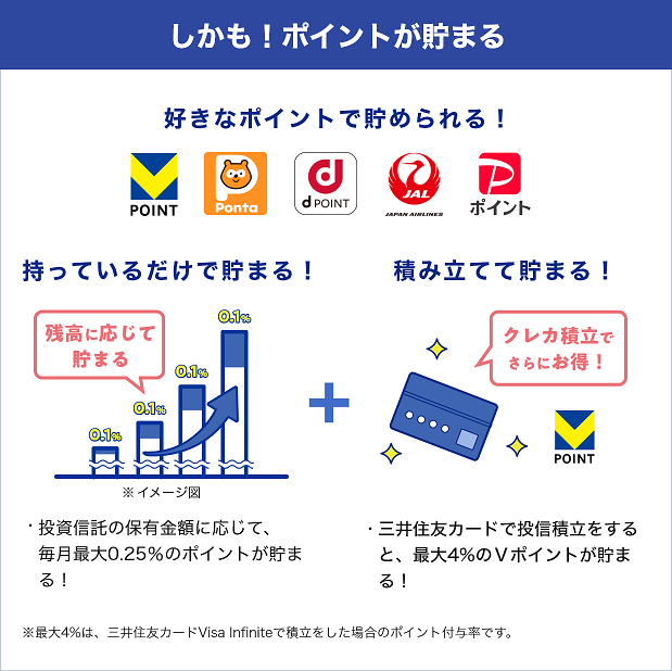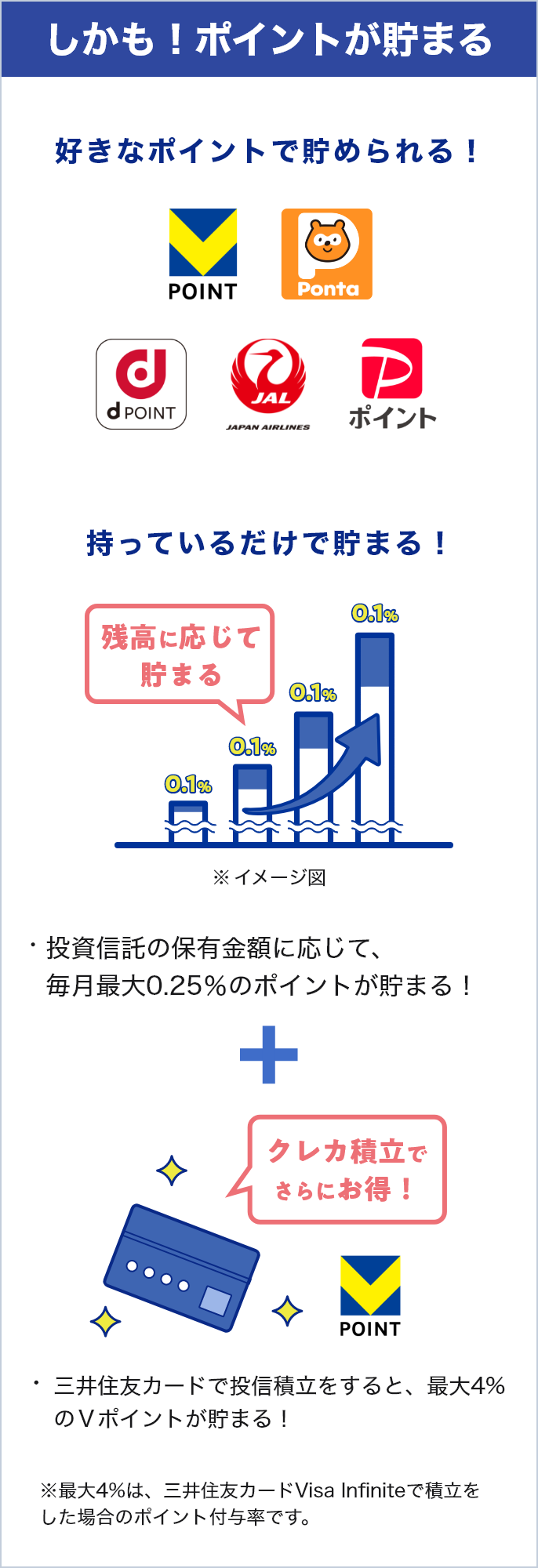 まずはクレジットカードの登録が必要です。サービスのご案内はクレカ積立をご確認ください。